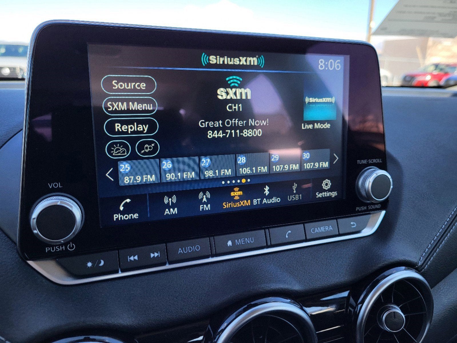 - Radio: AM/FM w/RDS/MP3/Aux-In -inc: 6 speakers plus 2 tweeters in A-pillar, 8" color display w/multi-touch control, streaming audio via Bluetooth®, Bluetooth® hands-free phone system, hands-free text messaging assistant, Siri Eyes Free, Google Assistant voice recognition w/Apple CarPlay and Android Auto, NissanConnect, (1) front USB connection port (type A), (1) additional front USB (type C), (1) charge-only USB (type A) center console and SiriusXM radio w/advanced audio features