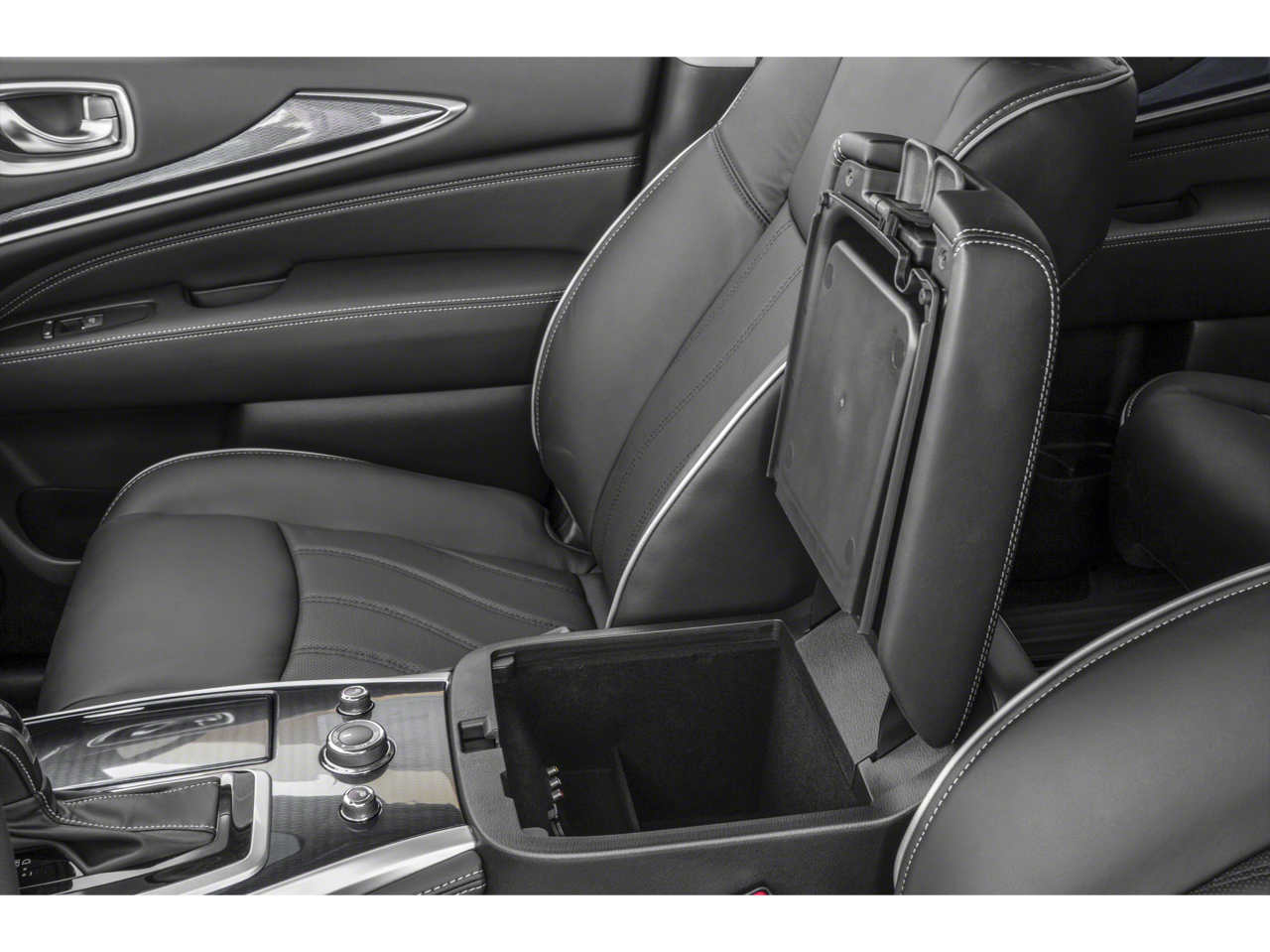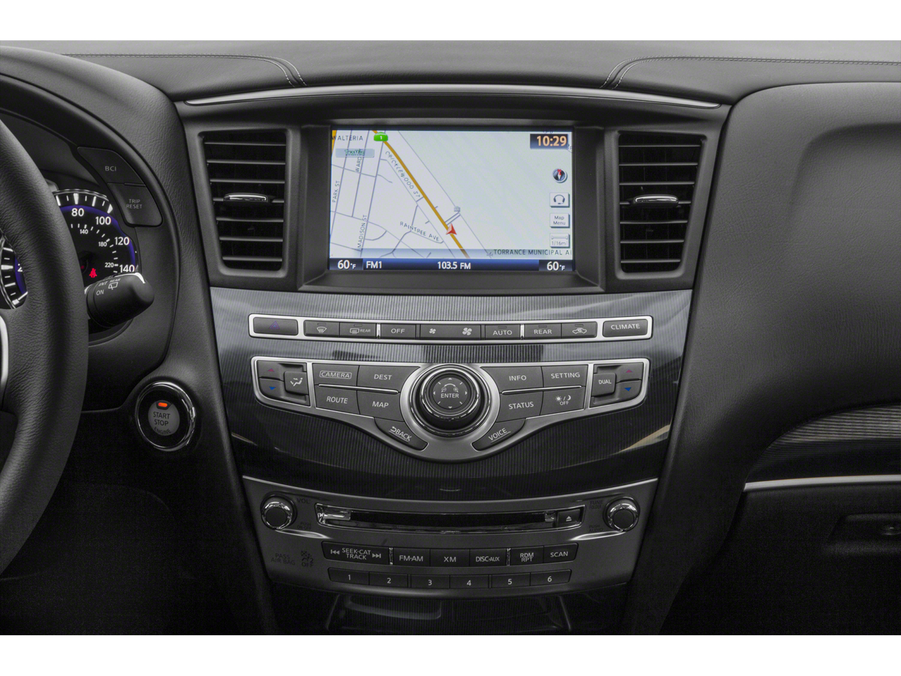 - Radio: AM/FM/CD/HD/MP3 Audio System -inc: 6 speakers w/playback capability, A/V USB ports x2 type A, Radio Data System (RDS), and speed-sensitive volume control, illuminated steering wheel-mounted audio controls, auxiliary A/V input jacks & 12-volts power outlet in front center console, INFINITI InTouch system w/8" color touch-screen display and voice recognition, SiriusXM radio w/3-month complimentary trial, SiriusXM Travel Link w/4-year complimentary trial access to weather, fuel prices, stock prices, sports scores and movie listings, Bluetooth® hands-free phone system and audio streaming, hands-free text messaging assistant and 6 USB charging ports: charge only, front center console, illuminated (2x - 1 type A & 1 type C), rear center console-mounted, illuminated (2x - 1 type A & 1 type C) non theater only, 3rd row (2x - type A)