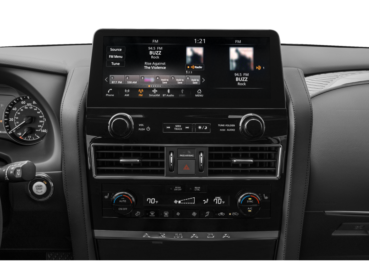 - Radio: NissanConnect w/SiriusXM -inc: 6-speaker audio system, Alexa Built-in, wireless Apple CarPlay, Android Auto, Nissan door to door navigation, 12.3" color display w/multi-touch control, SiriusXM Traffic and Travel Link w/3 month complimentary trial access, NissanConnect services powered by SiriusXM, Bluetooth® hands-free phone system, hands-free text messaging assistant and Wi-Fi hotspot