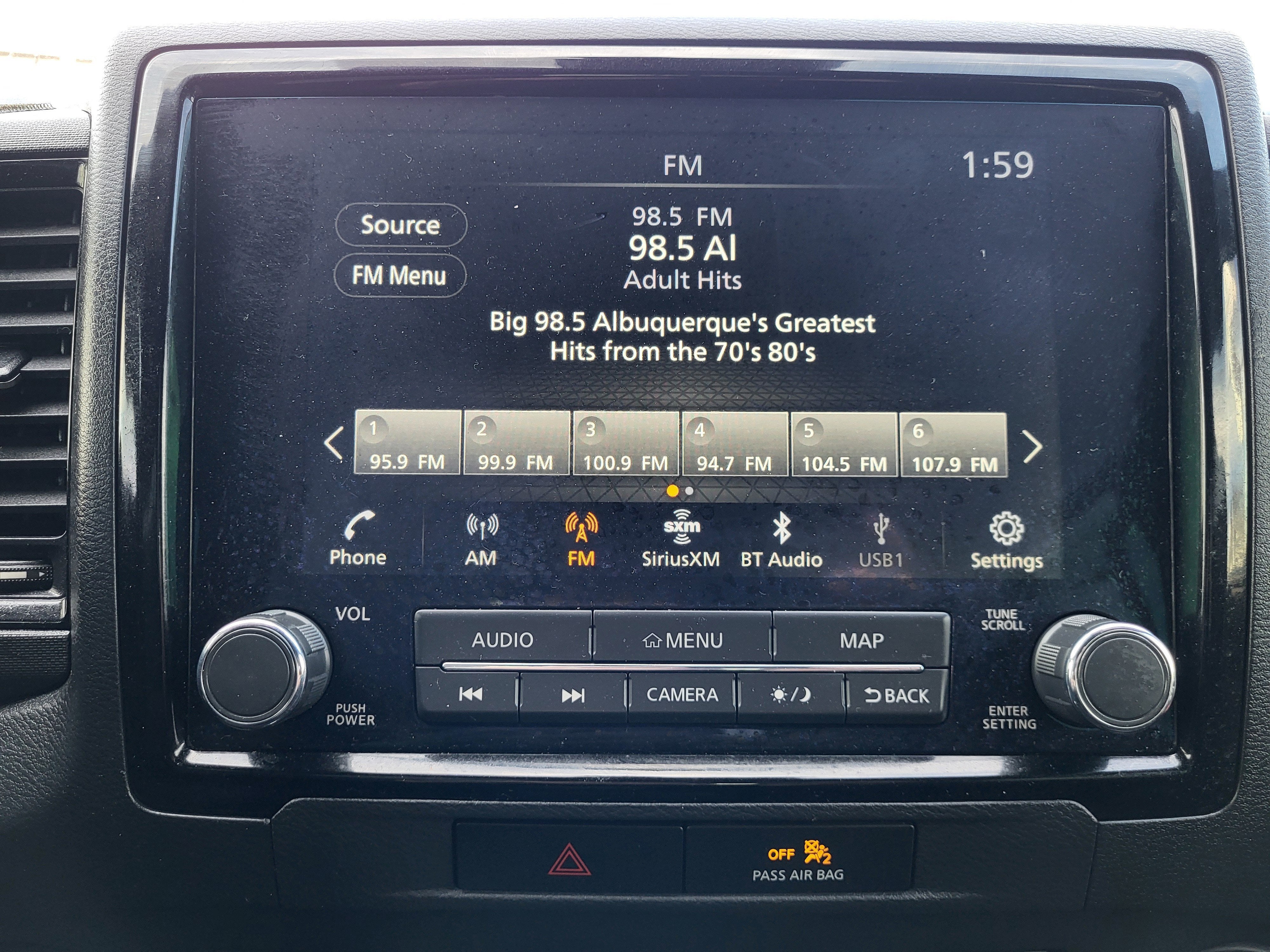 - Radio: SXM/AM/FM/AUX/USB Audio System w/6 Speakers -inc: 9.0" color touch-screen display, wireless Apple CarPlay, Android Auto, Bluetooth® hands-free phone system and streaming (audio or text message), voice recognition for audio features, Siri Eyes Free, 1 USB-A and 1 USB-C front ports, steering wheel audio controls, Nissan door to door navigation, NissanConnect services and Wi-Fi hotspot