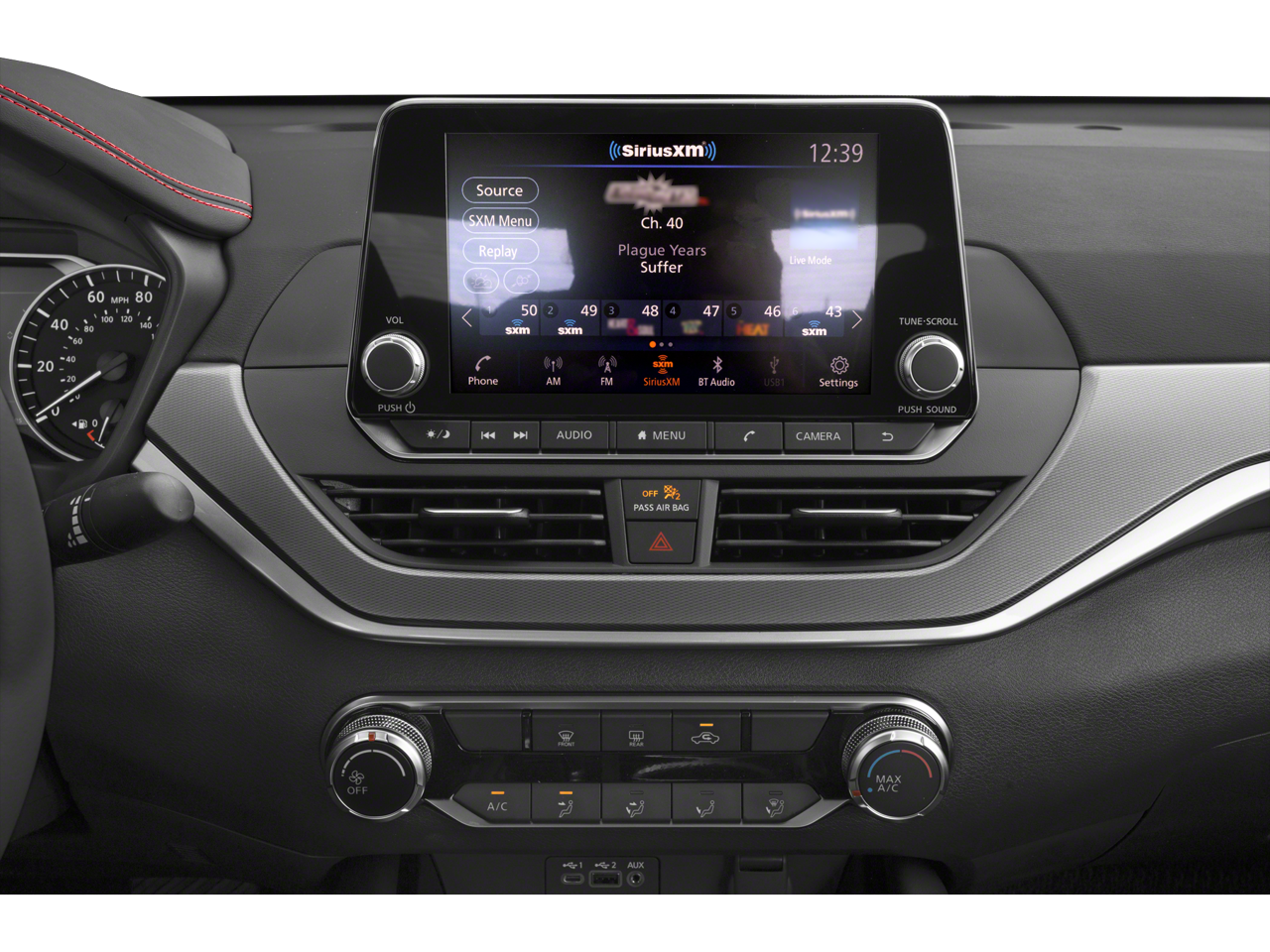 - Radio: AM/FM Audio System -inc: RDS, MP3 and aux-in, 6 speakers, NissanConnect featuring Apple CarPlay, Android Auto, 8" color display w/multi-touch control, 1 front illuminated USB port (type-C) for compatible devices, SiriusXM radio, Bluetooth® hands-free phone system, streaming audio via Bluetooth®, hands-free text messaging assistant, Siri Eyes Free and Google Assistant voice recognition
