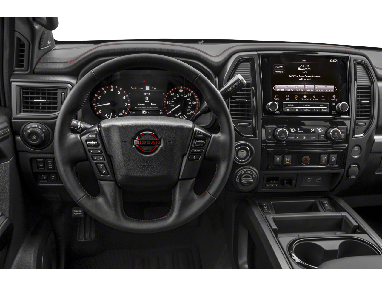 - Radio: NissanConnect w/Navigation -inc: 9" touchscreen display, 6 speakers, wireless Apple CarPlay, Android Auto, SiriusXM radio, Nissan door to door navigation w/3D building graphics and satellite imagery, connected navigation features including online POI search, over-the-air map updates and online premium traffic information, SiriusXM Traffic, SiriusXM Travel Link w/weather, fuel prices, movie listings, stock info, sports and parking, TomTom weather, Wi-Fi hotspot, follow me home function, 2 illuminated USB connections (1 type A, 1 type C), 2 USB-A charge only ports, Bluetooth® hands-free phone system, streaming audio via Bluetooth® and hands-free text messaging assistant